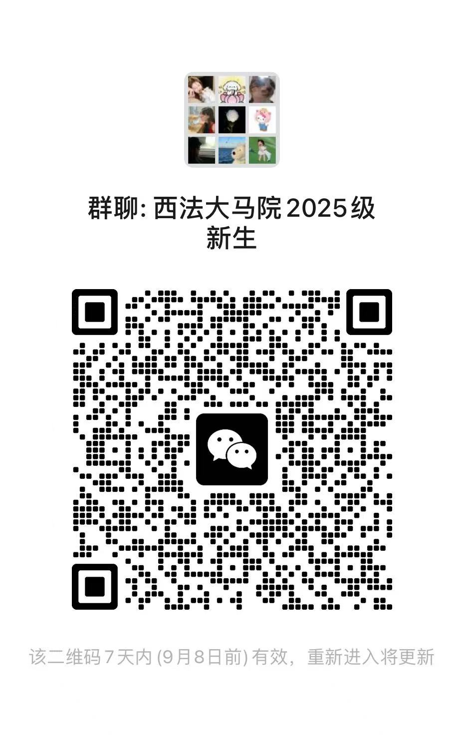 新生寄语:祝贺各位同学进入研究生阶段,开启未来三年的西法大学习生活。我希望你们能够始终保持求知的热忱,研究生阶段,不仅是知识的深化,更是相关思维方式的锤炼。愿你们保持对于学术的好奇,坚持独思与协作并重,勇于试错,敢于创新,创造出属于你们的美好未来。